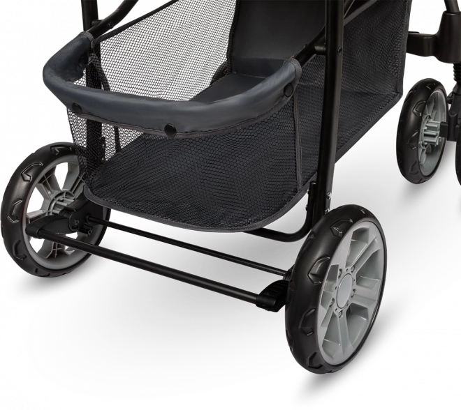 Varnost je na prvem mestu: pettočkovni pasovi z mehkimi blazinicami, prečka s pladnjem in držalom za lonček ter testiranje po standardu EN 1888 (laboratorij SGS) prinašajo zanesljivost pri vsakodnevni uporabi. Okretna EVA kolesa z mehkim blaženjem na sprednji osi dušijo neravnine, zlahka se spopadejo z mestom, njihova blokada za vožnjo naravnost pa drži stabilno smer na tlakovcih.