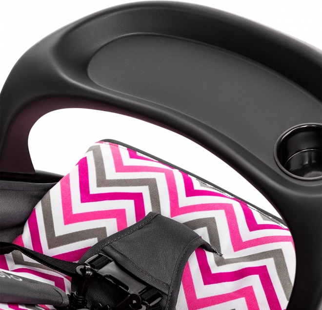 Pettočkovni pasovi z mehkimi blazinicami in sprednja prečka s pladnjem povečujejo varnost in udobje. Konstrukcija izpolnjuje standard EN 1888, preverjeno v laboratoriju SGS.