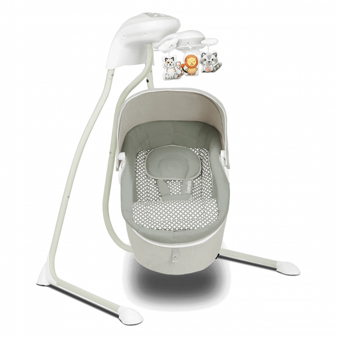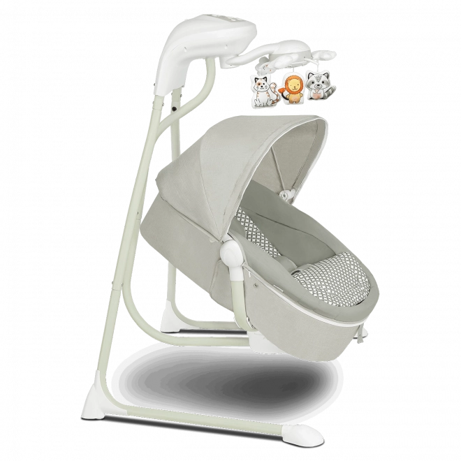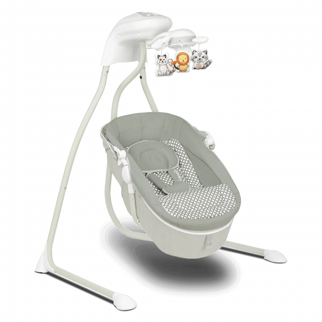 Ležalnik ponuja 3 nastavljive položaje od ležečega do sedečega, vrtenje košare do 115° ter udobno blazinico z odstranljivim oblazinjenjem za enostavno čiščenje. Vgrajeni vrtiljak z igračkami in lučkami, MP3 predvajalnik z USB in časovnik guganja poskrbijo za zabavo in udobje. Praktična mreža proti komarjem ščiti pred insekti in omogoča uporabo tudi na prostem.