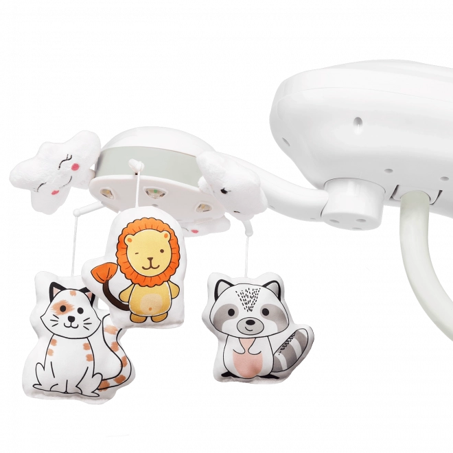 Vrtiljak s simpatičnimi igračkami in nežnimi lučkami podpira vizualni in motorični razvoj. MP3/USB omogoča predvajanje najljubših melodij vašega malčka.