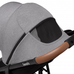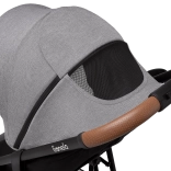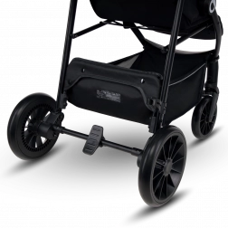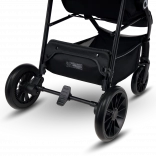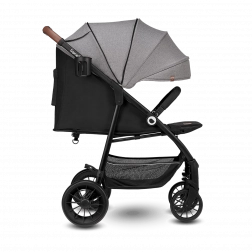 Voziček je prijazen do staršev in dodelan v detajlih: hitro zlaganje z varovalom za varen transport, velik nakupovalni koš, ročaj iz eko usnja za prijeten oprijem ter praktični dodatki, kot sta komarnik, skrit v opori za noge, in držalo za pijačo. Odsevni elementi povečujejo vidnost v mraku, 5-točkovni pasovi z dvema višinama pa zagotavljajo varno pripenjanje rastočega otroka.