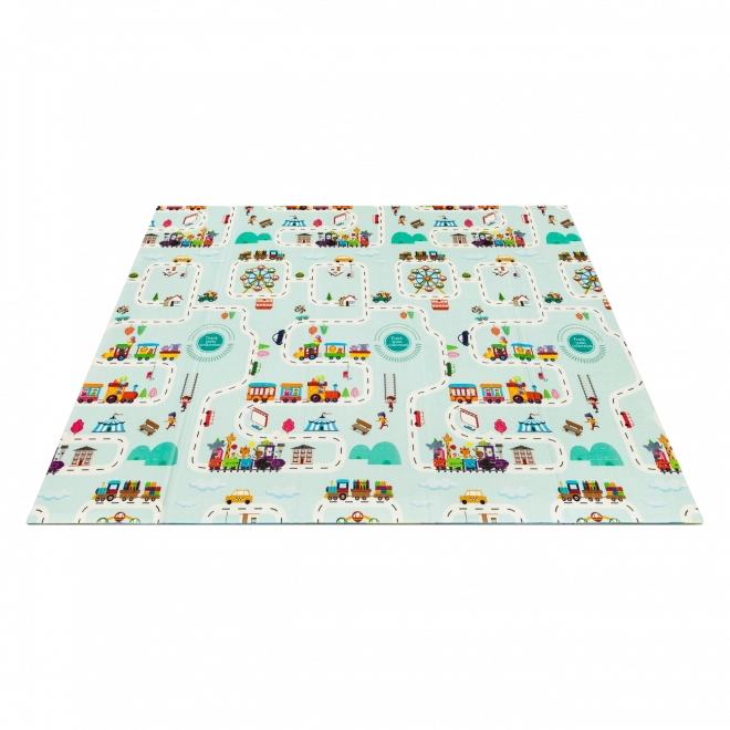 Ena podloga, dvojna zabava. Pisane safari živali in interaktivni zemljevid mesta navdihujejo pripovedovanje zgodb ter razvijajo domišljijo.