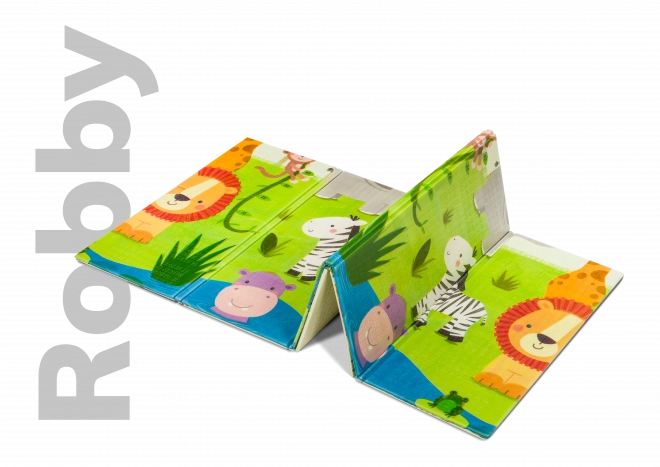 Odkrijte prostorno in udobno igralno površino za otroke – obojestransko podlogo LIONELO Robby z motivi Safari in Življenje v mestu. Zahvaljujoč materialu XPE pena je mehka in hkrati stabilna, ima protizdrsno teksturo, je vodoodporna in enostavna za čiščenje. Podloga izolira pred mrazom, ne vsebuje PVC-ja, ftalatov ali formamida in jo lahko zložite v kompaktno velikost, skupaj s praktično torbo z ročajem.