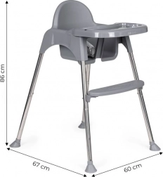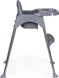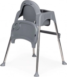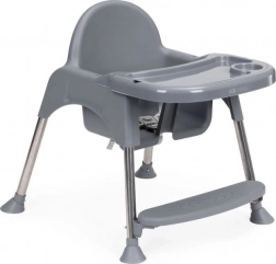 Z pametno rešitvijo boste preprosto preoblikovali visok stolček v nižji stol – le odvijete del nog in oporo za noge. Primeren je ne le za hranjenje, temveč tudi kot varno mesto za risanje in ustvarjanje brez skrbi za umazanijo v okolici. Kovinske noge z nedrsečimi kapicami ščitijo tla in zagotavljajo stabilnost, 3-točkovni pasovi in blokada proti zdrsu pa povečujejo varnost.