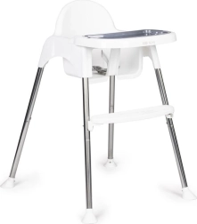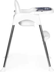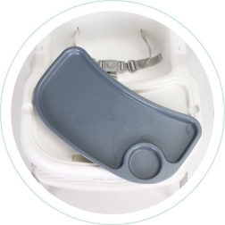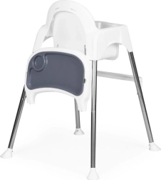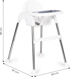 Moderen jedilni stolček 2v1 je izdelan iz kakovostnega materiala. Stolček je primeren za otroke od 6 do 36 mesecev. Lahko se sestavi v dveh višinah. Prednosti stolčka: udoben sedež z zaščito proti zdrsu, 5-točkovni varnostni pasovi, stabilne nedrseče noge, praktična opora za noge, snemljiv plastičen pladenj. Dimenzije sestavljenega stolčka so približno 86 x 67 x 60 cm. Največja nosilnost je 15 kg.