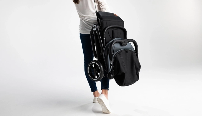XXL strešica z vodoodporno obdelavo in filtrom UPF50+ nudi zanesljivo zaščito pred soncem in dežjem. Za varnost skrbijo 5-točkovni pasovi in odsevni elementi za boljšo vidnost. Z enim pritiskom na gumb se voziček samodejno zloži v kompaktno obliko – enostavno ga prenesete s pomočjo posebnega paščka in zaščitnega prevleka.