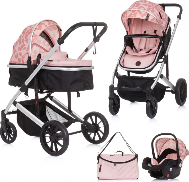 Stilski kombiniran voziček 2v1 za otroke od rojstva do 22 kg združuje udobje in praktičnost. Zahvaljujoč lahki in čvrsti konstrukciji z vzmetenjem, pretvorljivi sedežni enoti in dvosmernemu sedenju zagotavlja gladko vožnjo in največje udobje. Opremljen je z veliko nastavljivo strehico, 5-točkovnim pasom, višinsko nastavljivim ročajem iz eko usnja in prostornim shranjevalnim košem.