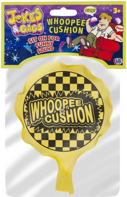Whoopee vzglavnik je odličen pripomoček za smešne izkušnje in razvedrilo. Dovolj je, da ga neopaženo postavite pod nekoga, ki ne sluti nič slabega, in ko se oseba usede, vzglavnik odda smešen zvok.
