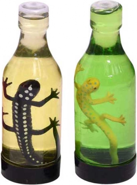 Predstavljamo vam naše skrivnostne in zabavne kuščarje, pokrite s sluzasto tekočino. Vsako pakiranje vsebuje enega kuščarja v steklenici, napolnjeni s kakovostnim tekočim sluzom. Otroci se lahko igrajo z mehko in prožno teksturo sluzi, medtem ko odkrivajo izrazite barve in oblike kuščarja.