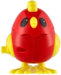 Piščanček je na voljo v rdeči in rumeni različici – privlačne barve, ki jih otroci obožujejo.