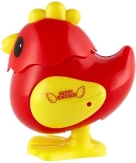 Obrni ključek, spusti in opazuj veselo skakanje piščančka. Preprost mehanizem za neskončno zabavo.