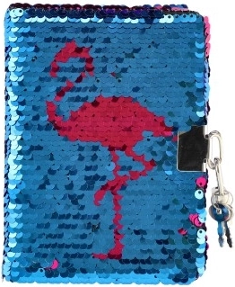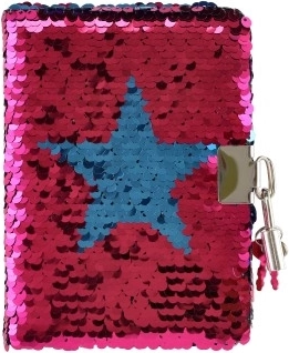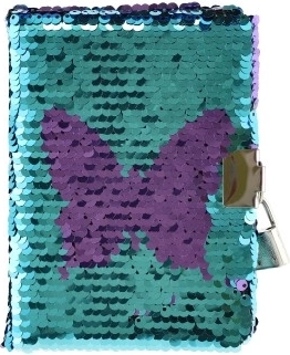 Slogovni skrivni dnevnik z dvostranskimi bleščicami, ki ob potegu z roko spreminjajo videz in barve. Za več zasebnosti ima dnevnik kovinsko ključavnico z dvema ključkoma, v notranjosti so čiste, nepodčrtane strani za pisanje in risanje. Kompaktne mere 11 × 15 × 2 cm ga naredijo idealnega za šolo in na poti. Dobavljamo mešanico motivov in barv glede na zalogo.