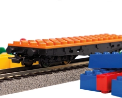 S tem atraktivnim dvoosnim ploščnim vagonom lahko izpustite uzde svoji domišljiji. Njegova prilagoditev za kompletne kocke odpira povsem nove možnosti za modelne železnice. Pustite otrokom, da ustvarijo edinstvene konstrukcije in jih s pomočjo starejših spravite v gibanje.