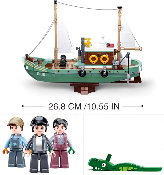 Komplet se dostavi s tremi figuricami, tiskanimi navodili in nalepkami za personalizacijo vaše ladje. Sestavljena ladja Ellie meri spoštljivih 27 cm in je pripravljena na katerokoli pustolovsko odpravo. Zaradi visoke kakovosti ABS plastike so kompleti trpežni in dolgotrajni. Prav tako so kompatibilni z drugimi znamkami kot sta LEGO, Mega Bloks itn.