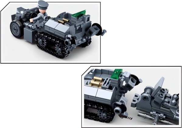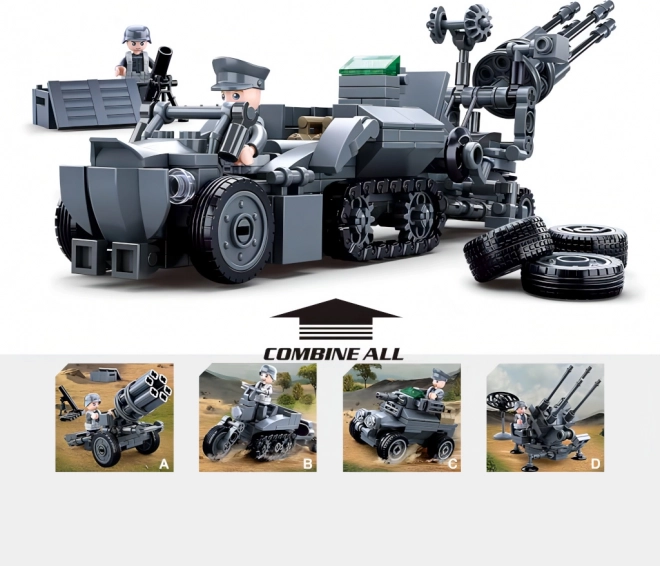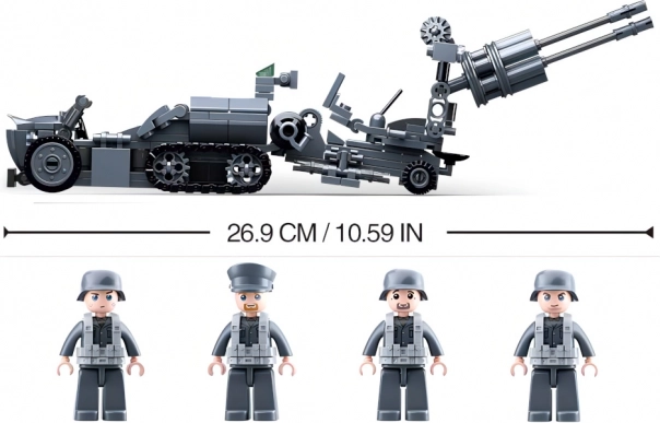 Ta gradbeni komplet prinaša celovite pripomočke za ustvarjanje vojaških scenarijev z nemško protiletalsko tehniko. Glavni deli vključujejo raketomet, protiletalski top, oklepno vozilo in posebno gosenicno motorno kolo. S kombiniranjem lahko ustvarite velik model mobilne jurišne enote.