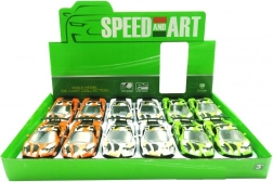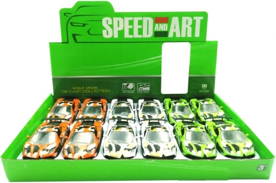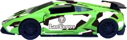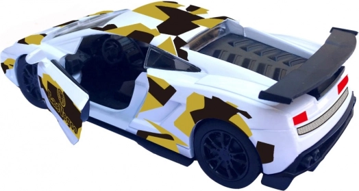 Ta kovinski model športnega avtomobila LAEVEGOS združuje realistične podrobnosti z vzdržljivo konstrukcijo. Zahvaljujoč odpiralnim vratom in funkciji pull back bodo otroci in zbiratelji uživali v akcijski vožnji in privlačni razstavitvi na polici. Na voljo je v treh izvirnih zasnovah, ki očarajo z dinamičnimi vzorci in športnimi linijami.
