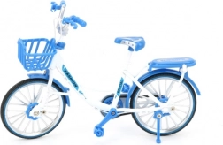 Mini kolo s sprednjo košarico, prtljažnikom in nastavljivim krmilom deluje kot pravi prevoz – idealno za igro in razstavljanje.
