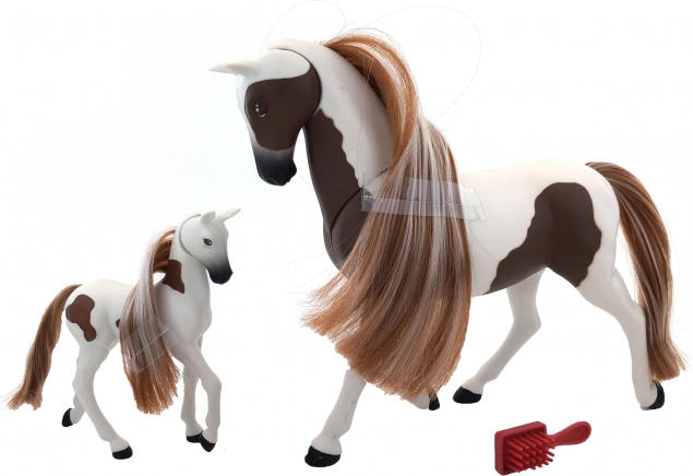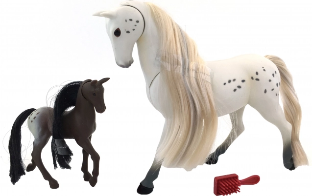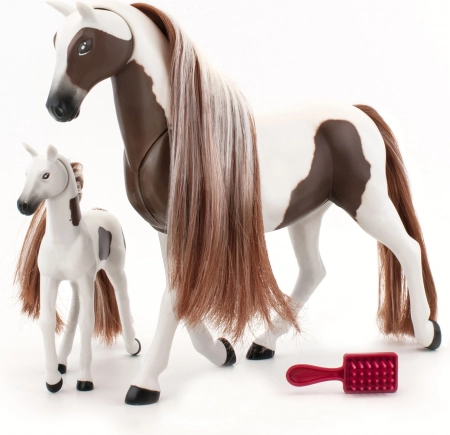 Dimenzije konjev so idealne za otroške igre in zabavo - kobila ima 18 cm in žrebiček 11 cm, kar je popolnoma primerno za katerokoli igralno zbirko.