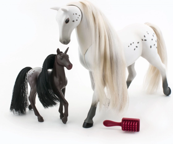 Odkrijte čar vezi med kobilo in njenim žrebičkom s to ljubko kompletom. V paketu so vključeni jabolko, korenček in čopič za česanje njihove čudovite grive.