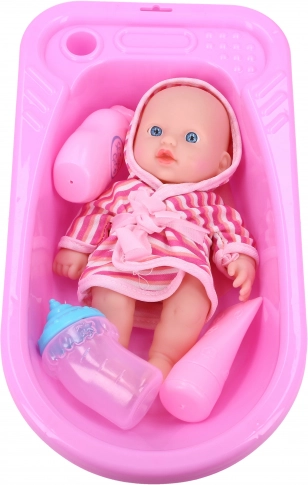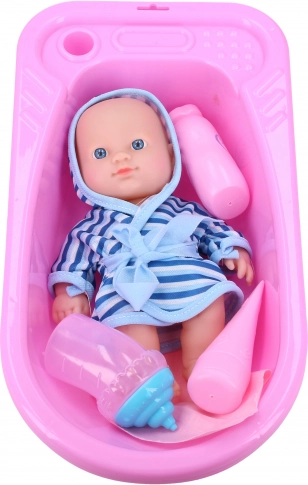 Ta čudovit kopalni set s prikupno punčko je idealen za otroke, ki imajo radi skrb za svoje igrače. Set vsebuje vse potrebno za kopanje punčke: