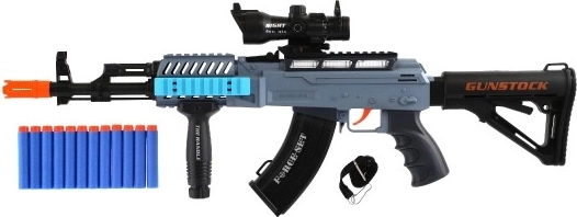 Ta otroški samopal je idealen za varne akcijske igre doma in na prostem. Zahvaljujoč penastim nabojem je igra prijazna do okolice, svetlobni in zvočni učinki pa okrepijo vzdušje vsake misije. Igrača je pripravljena za uporabo takoj po razpakiranju – baterije so priložene.