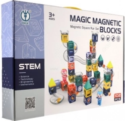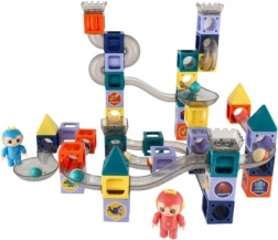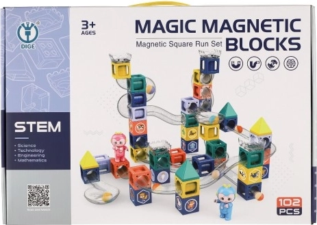 Ta barvit magnetni gradbeni komplet združuje zabavo in učenje. Zahvaljujoč trdnim magnetnim spojem je mogoče preprosto sestavljati stabilne konstrukcije in ustvarjati raznolike kroglične proge. Otroci urijo prostorsko predstavo, potrpežljivost in načrtovanje – medtem ko jih gradnja in opazovanje vožnje kroglic izjemno zabavata.