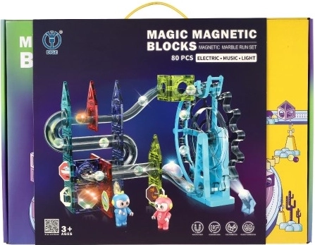 Ta barvita konstrukcijska igrača omogoča otrokom, da zlahka povezujejo magnetne dele in ustvarjajo izvirne proge za kroglice. Ko je trasa dokončana, pride napetost – bodo kroglice prevozile od starta do cilja? Za varen prihod poskrbita tudi simpatična junaka Nink in Wink. Vgrajeno električno kolo deluje kot dvigalo za kroglice ter dodaja svetlobne in glasbene učinke, ki jih je po potrebi mogoče izklopiti.