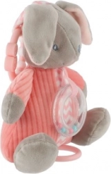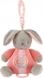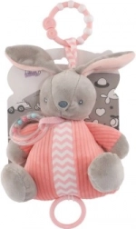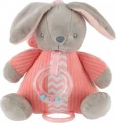 Plišasti zajček z navijalnim glasbenim mehanizmom in ropotuljico, rožnat (18 × 20 cm)