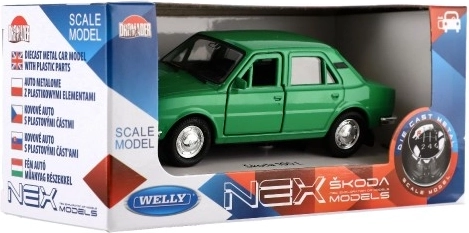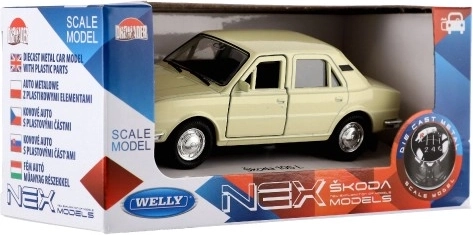 Zbirateljski model vozila Škoda 105 L v merilu 1:34–39 prinaša verne detajle, kovinsko izdelavo s plastičnimi dodatki ter odpiralna vrata in prtljažnik. Model ima prosti tek, je lakiran z originalnim avtolakom in je primeren za otroke od 3 let ter strastne zbiratelje.
