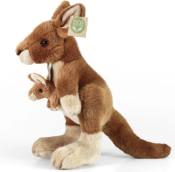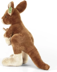 Kenguru stoji pokonci, v trebuščku ima prisrčnega mladiča in je na dotik razkošno mehak. Odlično darilo za otroke od 0+, pa tudi kot ljubka dekoracija otroške sobe.