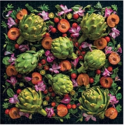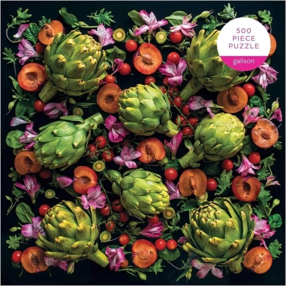 Odkrijte čar popolno nepopolnih plodov s sestavljanko GALISON Artičokovi cvetovi, 500 kosov. Motiv fotografinje Sarah Phillips prinaša kontrastno kompozicijo z artičokami, paradižniki in cvetovi na črnem ozadju. Zahvaljujoč kakovostnemu tisku, mat zaključni obdelavi in natančno izrezanim koščkom boste uživali v tekočem sestavljanju ter zvestem prikazu detajlov in barv. Sestavljanka je izdelana iz recikliranih in trajnostnih materialov ter pakirana v čvrsti darilni škatli s priloženim referenčnim slikovnim listom.