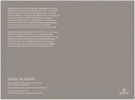 Potopite se v fascinantni svet Portobello Road, ene najbolj priljubljenih londonskih ulic, s to prekrasno sestavljanko. Z motivom priznanega fotografa Jamesa Ogilvyja 1000 kosov te sestavljanke prinaša veselje do ustvarjalnosti in sprostitve.