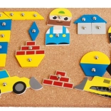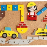 Spoznajte zabijalsko igro Gradbišče, idealno za male gradbene mojstre od 3. leta dalje. Igra podpira razvoj fine motorike, koncentracije in ustvarjalnosti preko interaktivne igre s plutasto ploščo in lesenimi oblikami.