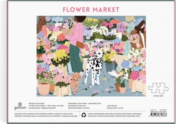 Potopite se v živo atmosfero živahne cvetlične tržnice z ljudmi in psi, vključno z ikoničnim dalmatincem v središču prizora. Sestavljanka GALISON izstopa po vrhunskem tisku z neškodljivimi barvami in mat zaključku, ki zvesto prikaže barve in drobne detajle ter zmanjšuje bleščanje.