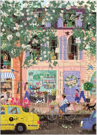 Predstavljamo vam originalno razglednično sestavljanko s tematiko spomladanske ulice, ki združuje občutek za detajle in funkcionalno oblikovanje. Dovolj je, da napišete željo na zadnjo stran, razdelite sestavljanko na kose in pošljete v priloženi kuverti. Prejemnik bo videl prikaz umetniškega talenta skozi 60 natančno izrezanih kosov.
