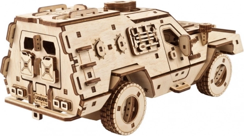 Navdušila vas bo kombinacija dizajna in mehanike: model oklepnega vozila UGEARS Dozor‑B prinaša realistične podrobnosti, vključno z odpirajočimi se vrati, zgornjo in zadnjo loputo ter skrbno izdelano notranjostjo s klopcami in varnostnimi pasovi. Na sprednjem delu je delujoča vitla za samoreševanje, medtem ko vzmetni motor, pogon na vsa kolesa in popolno vzmetenje poskrbijo za gladko vožnjo do približno 8 metrov.