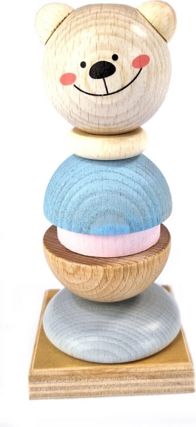 Ta lesen zložljiv (stapajoč) stolp z motivom medvedka je odlična izbira za prve didaktične igre. Otroci vadijo razlikovanje barv in velikosti, hkrati pa naravno razvijajo fino motoriko, natančnost gibov ter koordinacijo oko–roka. Deli so oblikovani za varen in enostaven prijem z majhno ročico.