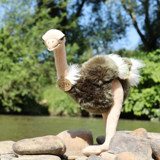 Prisrčen plišasti noj višine 32 cm je izdelan iz kakovostnega, mehkega kožuha in ima polnilo iz recikliranih PET plastenk. Njegovo mehko telo, dolge noge in realistični detajli ga naredijo za idealnega družabnika za crkljanje ter ekološko izbiro za odgovorne starše.