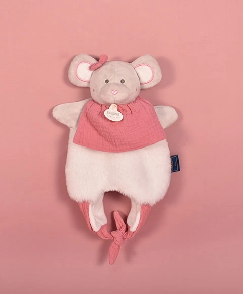 Ta multifunkcionalna igrača 3v1 predstavlja miško – ljubko ninico velikosti 30 cm, ki se zlahka spremeni v praktično torbico in hkrati služi kot lahka odejica. Kombinacija žametno mehke tkanine in pliša ponuja otrokom nežen dotik in občutek varnosti, medtem ko umirjeno barvno ujemanje deluje harmonično in pomirja.