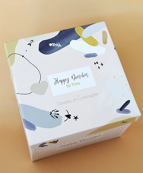Stilski detajl v obliki bež cofa in rutice okoli vratu poudarja sodoben videz igrače. Zajček je shranjen v elegantni darilni škatli – idealno za rojstvo dojenčka, krst ali kot prisrčno darilo ob katerikoli priložnosti.