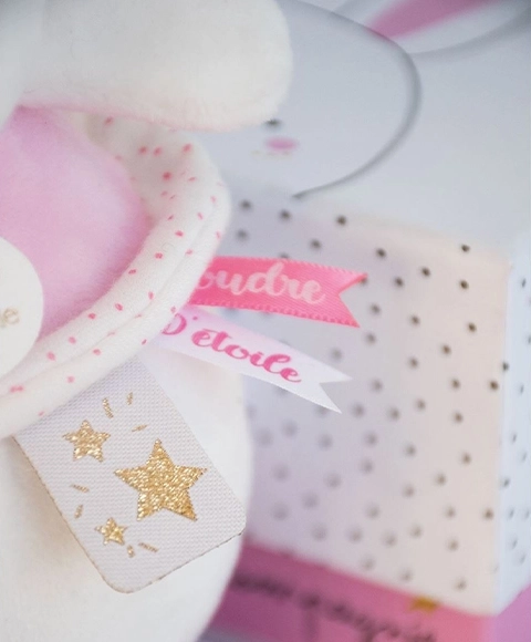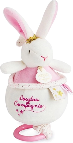 Prisrčen plišasti zajček v rožnati barvi predvaja nežno melodijo, ki pomiri dojenčka čez dan in pred spanjem. Mehki materiali in različne teksture spodbujajo razvoj čutov, elegantna darilna škatla pa ga naredi za odlično darilo za novorojenčka.