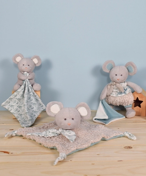 Ta prikupna miška z odejo je zasnovana tako, da zagotavlja najvišjo raven udobja in nežnosti že od rojstva. Bio bombaž zagotavlja prijaznost do občutljive otroške kože in okoljsko odgovornost.