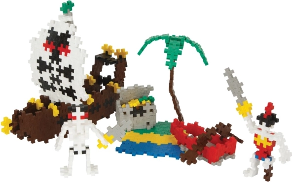 Set Plus-Plus Pirati prinaša ure ustvarjalne zabave za male in velike graditelje. Zahvaljujoč pametni obliki kosov lahko preprosto sestavljate ravninske in 3D modele – od drznega pirata in piratske ladje do skrinje z zakladom. Del pakiranja je podroben priročnik z navdihi, ki pomaga začetnikom in naprednim.