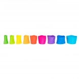 Vsak lonček je izdelan iz kakovostnih materialov, ki zagotavljajo dolgo življenjsko dobo in varnost med igro. Otroci lahko lončke zlagajo enega na drugega, jih vstavljajo enega v drugega ali jih uporabijo kot pripomočke pri drugih igrah. Višina zložženega stolpa lahko doseže do 55 cm!