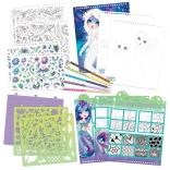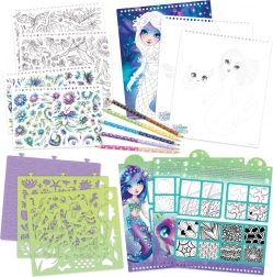 Del seta je bogat pribor za domiselno ustvarjanje: nalepke, šablone, teksture in kakovostne dvostranske barvice. Priloženi prikazi tehnik in osnovna teorija barv pomagajo izboljšati risarske veščine ter spodbujajo samoizražanje.