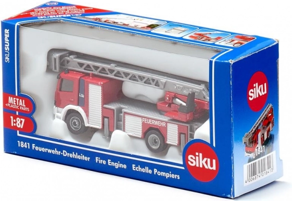Gasilski tovornjak z izvlečno in vrtljivo lestevjo v merilu 1:87. Kovinski in plastični deli, gumijaste pnevmatike. Odlično za otroke in zbiratelje.