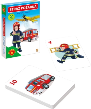 Set 25 slikovnih kart, s katerimi lahko z otroki igrate dve osnovni kartni igri – Peter in Spomin. Obe odlično urita pozornost, razvijata asociacije in učita družabnega vedenja. Gre za idealen uvod v svet iger za najmlajše. Tematske ilustracije prikazujejo osnovno opremo in delovanje gasilske enote.