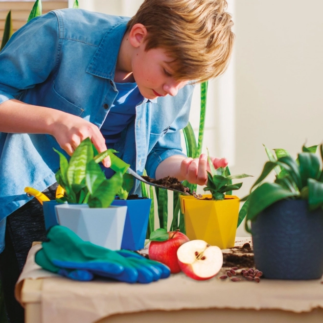 Barviti lončki, zemlja in semena spremenijo dom v mini laboratorij. Otroci se na naraven in igriv način naučijo osnovnih načel nege rastlin.