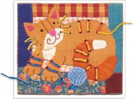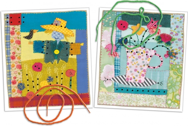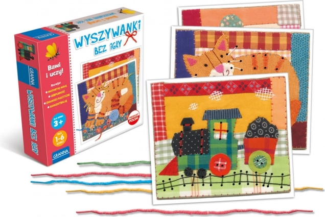 Zdaj se loti dela! V škatli boš našel barvne vrvice in čudovite patchwork slike. Na slikah boš videl lokomotivo, strašilo, mačko, snežaka in druge čudeže. Zdaj lahko vezeš tudi brez igle!Želim ti veliko zabave!
