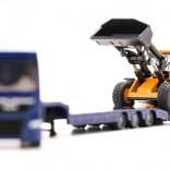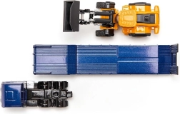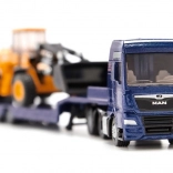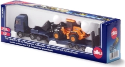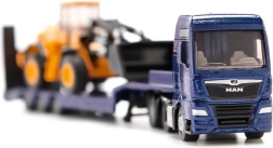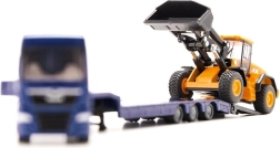 Ta podroben komplet združuje moder vlačilec MAN TGX z nizkonakladalnim polpriklopnikom in gradbeni kolesni nakladač JCB. Trpežna kovinska konstrukcija (die-cast) z natančnimi potiski ter prosto vrtečimi se kolesi ponuja avtentičen videz in funkcionalnost. Zahvaljujoč premični zajemalki nakladača in rampam priklopnika lahko otroci zlahka uprizorijo prevoz gradbenih strojev.